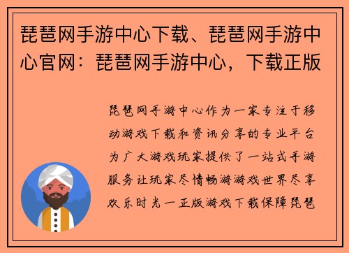 琵琶网手游中心,作为一家专注于移动游戏下载和资讯分享的专业平台,为广大游戏玩家提供了一站式手游服务,让玩家尽情畅游游戏世界,尽享欢乐时光。